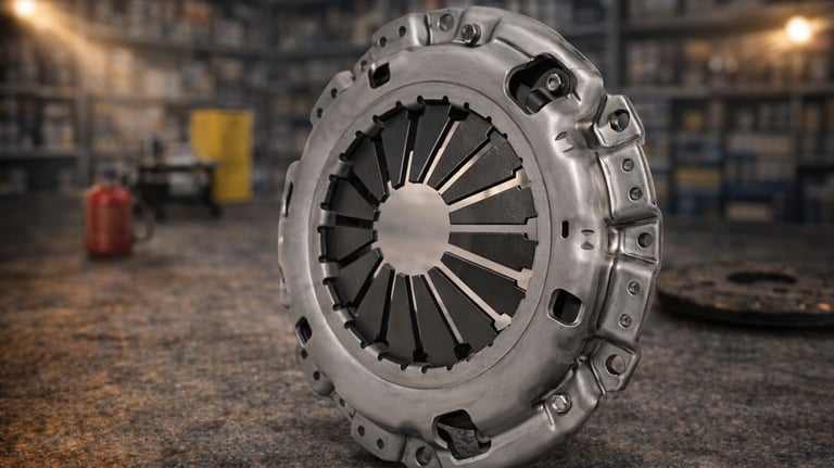 Platôs de embreagem responsáveis pela pressão correta do sistema, garantindo funcionamento eficiente da transmissão.